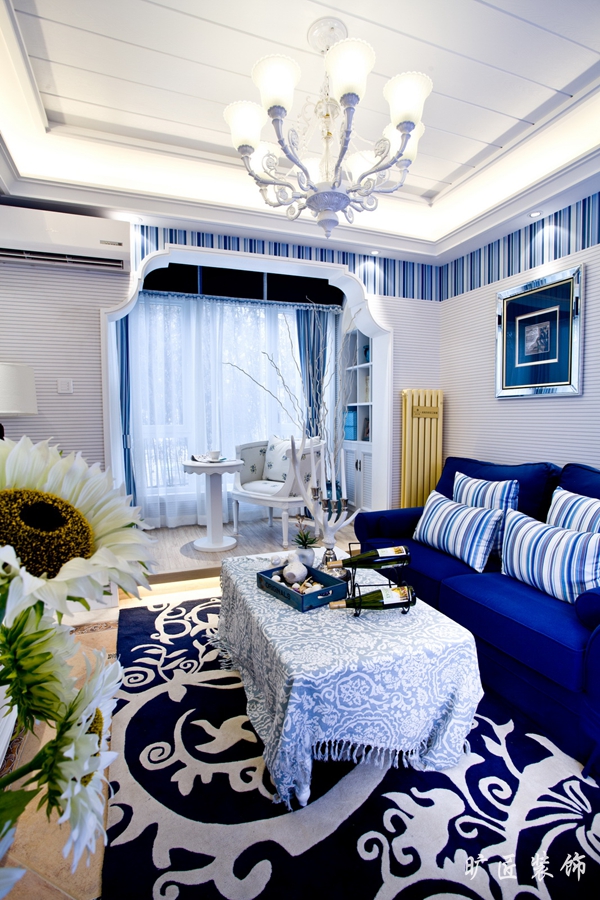 地中海的獨特風情,總能給人帶來別樣的浪漫情調。這套居室的設計,以地中海風格為基調。走進室內,即刻被無所不在的柔和所包圍。純美自然的裝飾,清新淡雅的色調,在一剎那抓住了你的心靈,讓你沉醉在這迷人的空間中,舍不得離開。鑲嵌式的純藍色彩,在地面上延伸,沖淡了室內的凝重氛圍,帶來清爽的感觀。