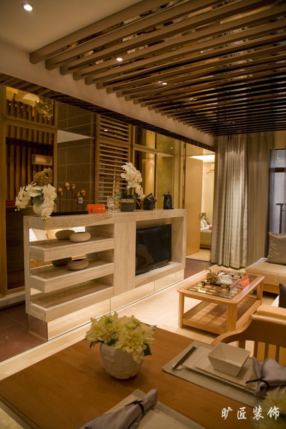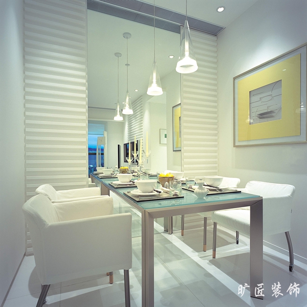 這是一間需要靜下心來駐足觀賞的現(xiàn)代居室,現(xiàn)代時尚的元素在這間不到100平的居室內(nèi)體現(xiàn)得淋漓盡致。居室主人很巧妙地將一些元素從頭至尾貫徹其中。玻璃給人一種通透、簡單的感覺,可以在茶幾、餐桌、洗漱臺等多處看見。其次是傳遞純潔、干凈訊息的白色長方形條紋,大到窗簾、電視背景墻、餐廳墻面、臥室墻面背景,小到床單花紋、書桌椅子的紋路設計上都能夠體現(xiàn)。主人一定是個對生活品味、生活質(zhì)量要求極高的人,也是個追求簡單和特立獨行的人,臥室的三腳架圓盤燈、床頭的臺燈、餐廳上方的吊燈以及書房的各個小物件這些玩意無一不透露出了主人的性格和喜好,就讓他的才華和品位隨時光靜靜在生活中流淌吧!