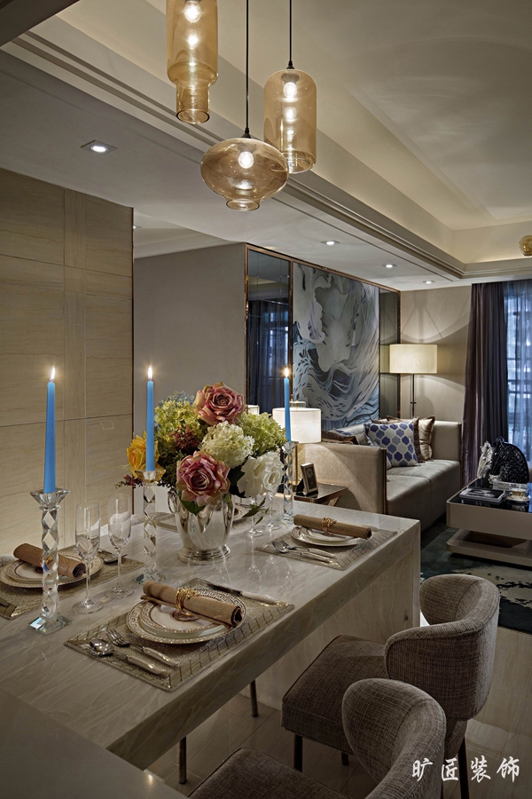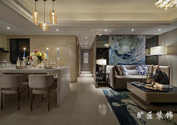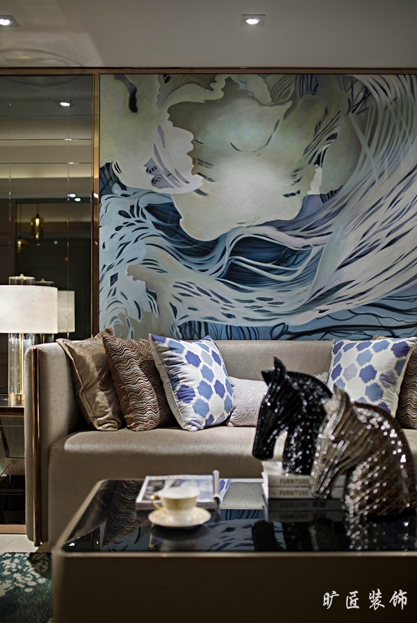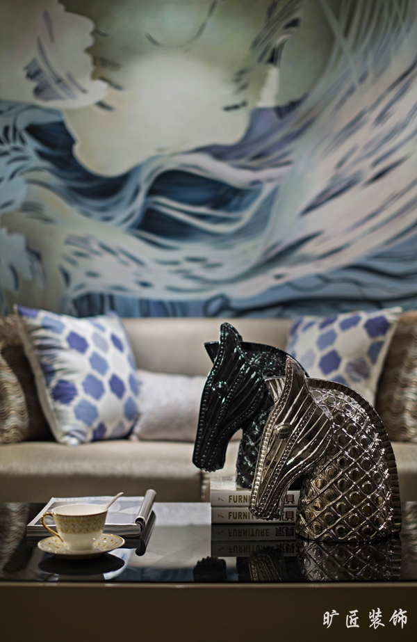 清新與沉淀、優(yōu)雅與現(xiàn)代、內(nèi)斂與時尚,都在這一刻匯集,卻毫無繁躁之氣,沒有多余的裝飾設(shè)計,有的都是最能體現(xiàn)生活的眼界與品質(zhì)的細節(jié)設(shè)計。淡而輕的金色光影如薩克斯的金色旋律緩緩地洋溢在空間里,觸動內(nèi)心最敏感的心弦,使得心緒蕩漾;生活中的世俗與浮躁揉碎在那藍色的柔波之中,讓人們的心結(jié)恍然,使人醍醐灌頂如夢方醒。