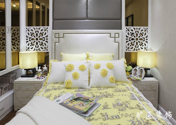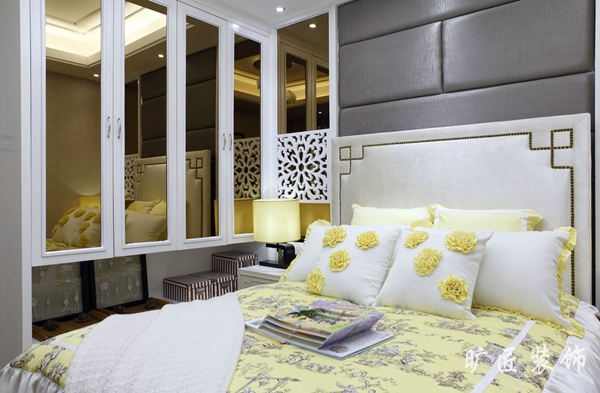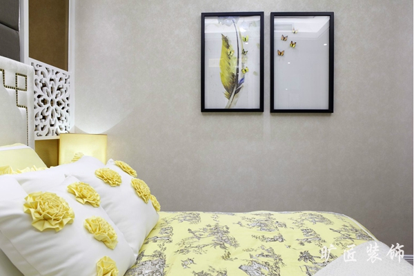 這是一次白色和黃色系沖撞出的創意新中式風格!可能提到中式風格,很多人第一時間聯想到的是深邃、暗沉一些的色彩。其實新中式是在傳統中式風的基礎上,因其開放包容的特點,吸收了現代和西方的一些元素,所以目前的新中式可謂是百家齊放。今天展現在我們眼前的就是融合現代元素之后的新中式風格,我們可以看到無論是在色彩還是在形式上,都和普通的新中式不一樣!黃色本身其實讓人感覺非常跳躍,設計師非常巧妙地將這一色系運用到了居室里,卻也讓人覺得眼睛很舒適,不會有特別跳脫的感覺。中式的一些元素我們依舊可以在居室中找尋到,客廳的吊燈、地板、床頭背景雕花的處理、書房的窗欞,以及隨處可見的花鳥、掛畫,在同一空間感受到不同年代的元素。