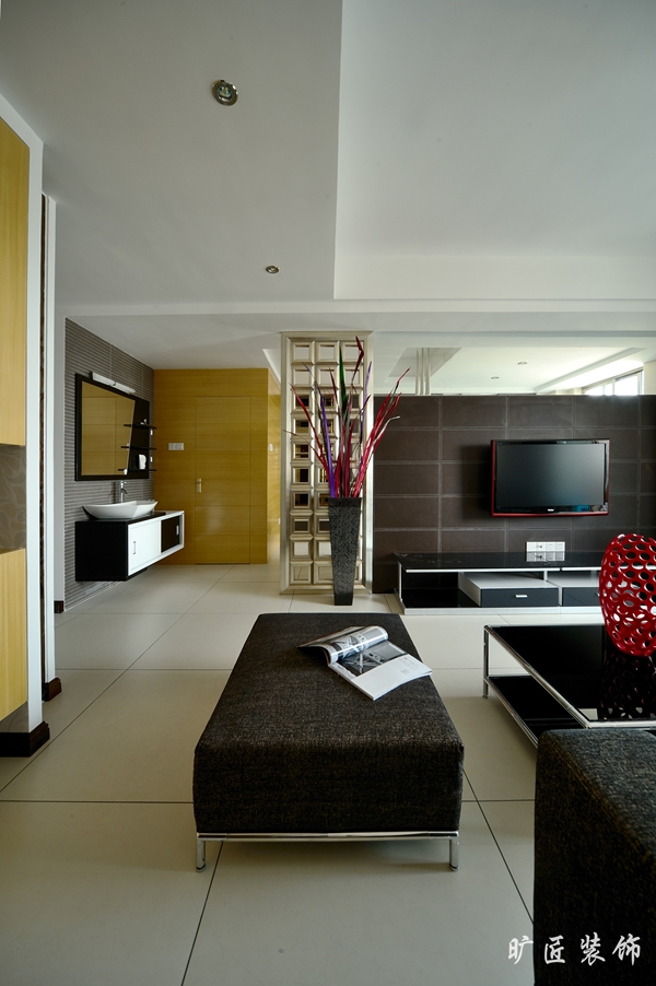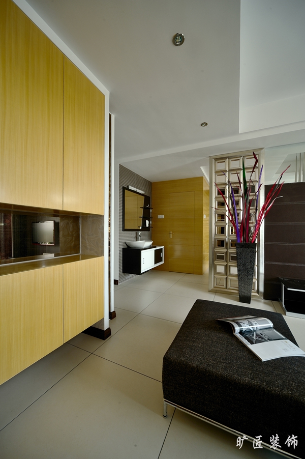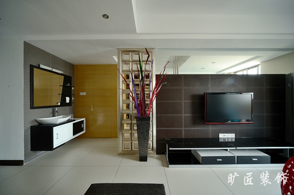 裝修整體定位為現(xiàn)代風(fēng)格,廚房與餐廳融為一體、有機(jī)聯(lián)動(dòng),使用更加寬敞、靈活。餐廳與客廳的隔斷采用了一個(gè)半高墻,頂部玻璃的運(yùn)用,讓整個(gè)視覺(jué)空間不僅產(chǎn)生了延續(xù)性,又能夠起到阻隔廚房油煙的作用,使整個(gè)房間既美觀又實(shí)用。入戶的空間,無(wú)數(shù)個(gè)畫(huà)框匯聚成了一組屏風(fēng),與電視主背景渾然一體,彰顯了主人的豪邁情懷,同時(shí),油畫(huà)框的質(zhì)地與背景的皮革突出了鮮明的現(xiàn)代元素,適當(dāng)?shù)臏\色木紋又增添了家的溫馨。