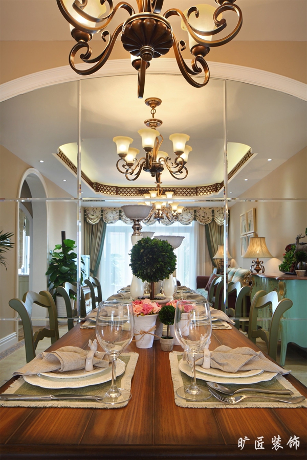 “情景規劃”最初是用在軍事和商業中,到了19世界60年代,一些學者將這一概念移用到了城市景觀和空間環境規劃。再后來,隨著一些心理學家諸如皮亞杰、榮格、海德格爾等空間心理學等理論的建立,空間更多地體現出了豐富的主體性特征,慢慢打破了原來以空間為主體轉移到以”人和空間的關系建立“為主體。現而今最先進的設計理念是這樣的:空間是和人發生關系,設計中的尺寸、家具、動線、擺件、色彩等所有都是在和人互動,所以這也是為什么人體工程學越來越受到重視的原因,以及為什么方案中動線一詞被用得越來越頻繁的原因。動線就是整個建筑空間的靈魂,一個良好的動線創造實際上是一種完美的情境創造。在本案中,設計師巧妙地用動線串聯起各個區域的功能,由外到內依次是廚房、客餐廳和臥室,廚房和客餐廳有機地聯動起來,符合人們活動的路線和頻次。客廳和餐廳中間是通向主臥的通道,過道此時已然成為客廳、餐廳、主臥三個空間的交集區域。餐廳鏡面的設計不僅讓整體空間變得更加開闊而且讓空間有了對稱性。