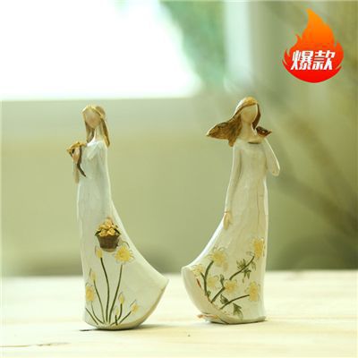 創意歐式 家居裝飾樹脂 金黃色 情侶長頸鹿 工藝品 客廳玄關擺件 創意結婚禮物