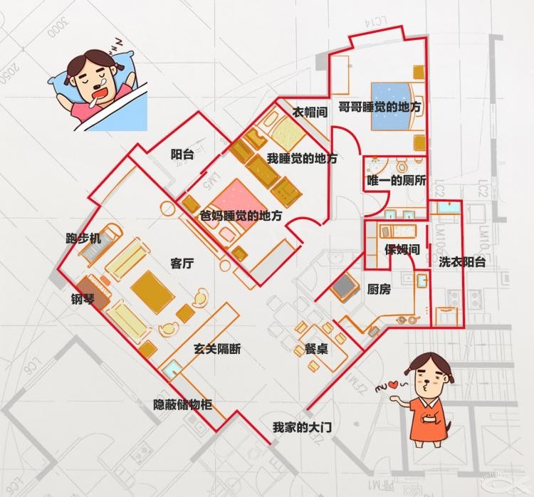 最后就是哥哥的房間啦,將來那面白墻背后就會是一間廁所了。